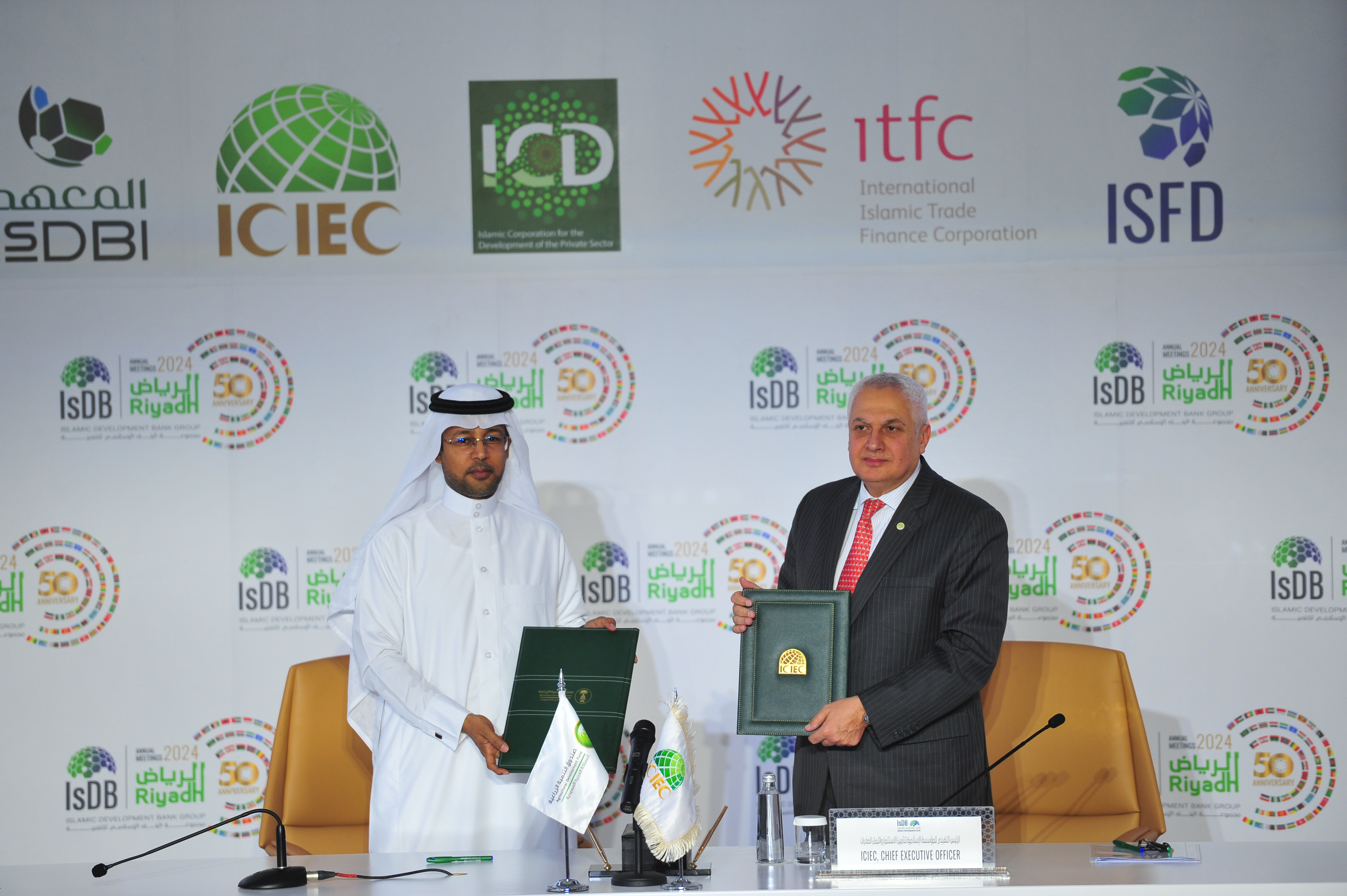 The Islamic Corporation for the Insurance of Investment and Export Credit (ICIEC) (http://ICIEC.IsDB.org), a Shariah-based multilateral insurer and esteemed member of the Islamic Development Bank (IsDB) Group, is pleased to announce the signing of a Memorandum of Understanding (MoU) with the Agricultural Development Fund (Saudi Arabia). The signing took place on the sidelines of the IsDB Group Annual Meeting 2024 at in Riyadh, Saudi Arabia. The MoU was signed by Mr. Oussama Kaissi, CEO of ICIEC, and Mr. Adel bin Abdullah Al-Jumaa, Chief Strategy Officer, Agricultural Development Fund.